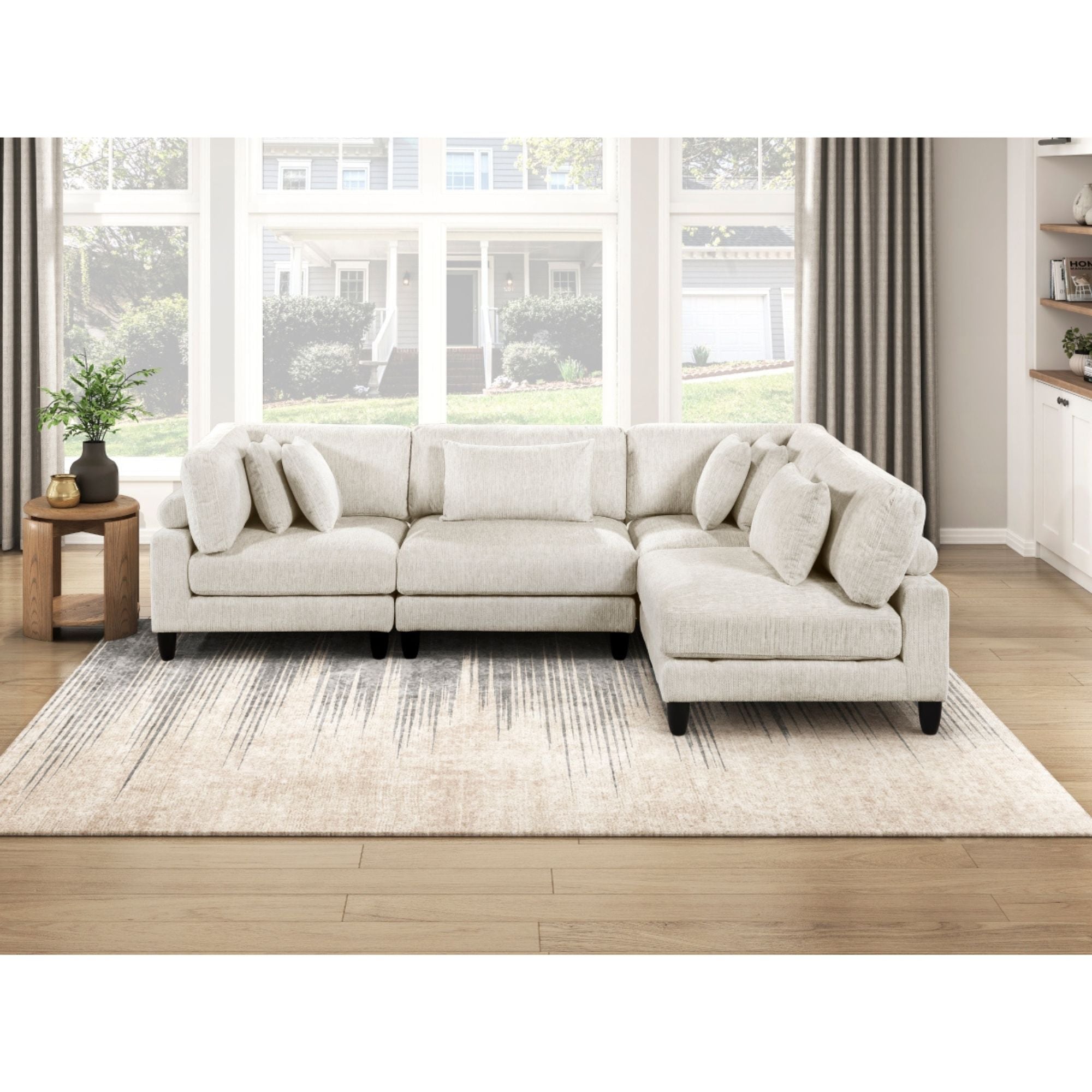 Soft textured microfiber upholstery, plush foam padding over pocket coils, and loose reversible cushions combine for long-lasting comfort. The cushion covers feature zipper closures, making cleaning and maintenance quick and effortless. Finished with 6 coordinating pillows, this sectional brings full comfort and a modern aesthetic to any home.