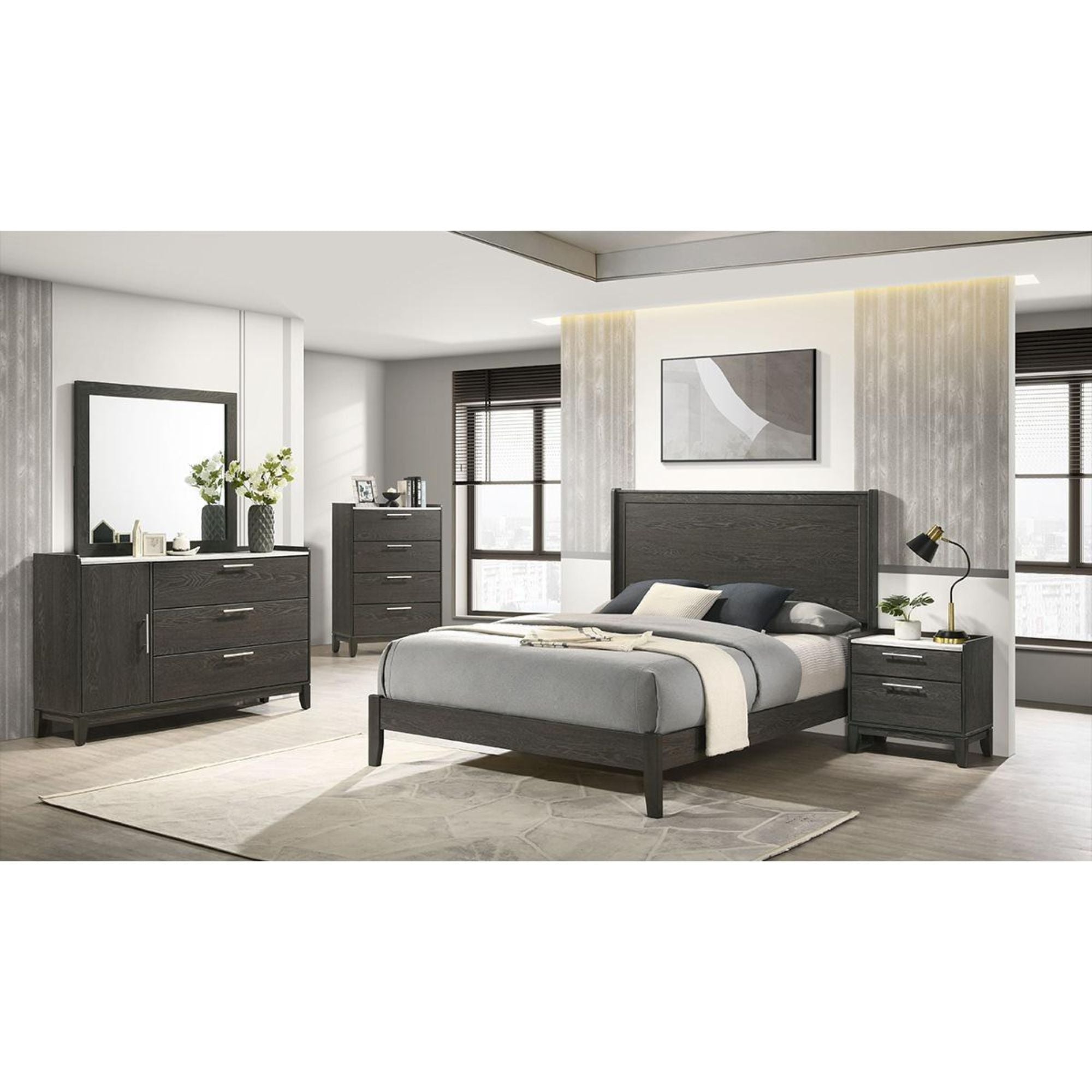 Elevate your bedroom with this elegant and functional bedroom set, showcasing a sleek dark grey finish and refined modern design. Each piece is thoughtfully crafted for both style and practicality, featuring clean lines, durable construction, and sophisticated faux marble accents for a touch of luxury. Perfectly coordinated, this set creates a cohesive and contemporary atmosphere that enhances any space.