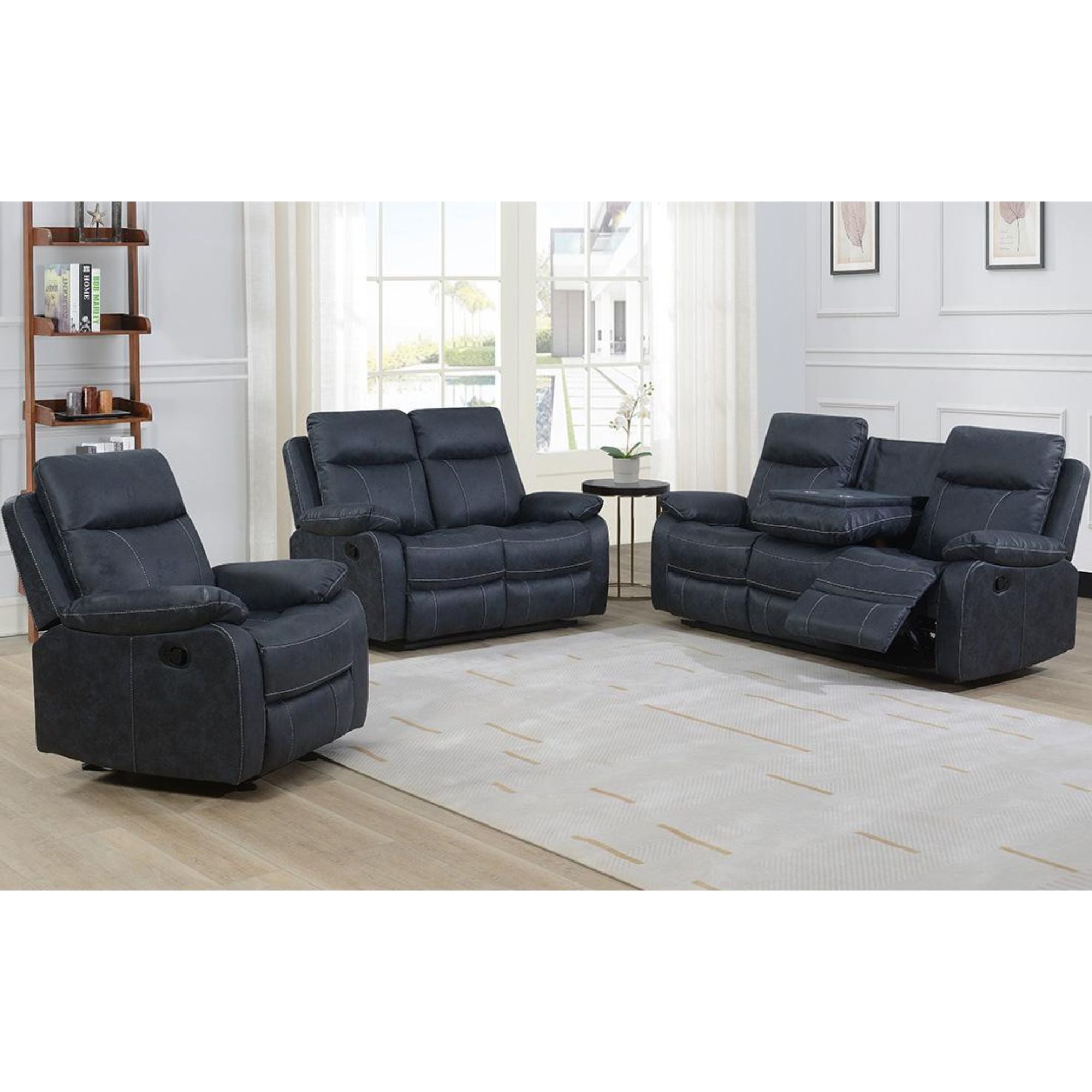 The Bristol 3‑piece reclining set from Kwality Furniture offers a versatile, comfort‑first seating solution ideal for living rooms and family spaces. Upholstered in soft, easy‑care fabric and built on a sturdy frame, the set includes a recliner, loveseat, and sofa — each designed for relaxation and everyday use. Plush cushioning, padded arms, and supportive high‑back seating provide cozy comfort for reading, watching TV, or lounging. With its compact yet comfortable design, Bristol2 suits both apartments and larger homes that want functional comfort without bulk.