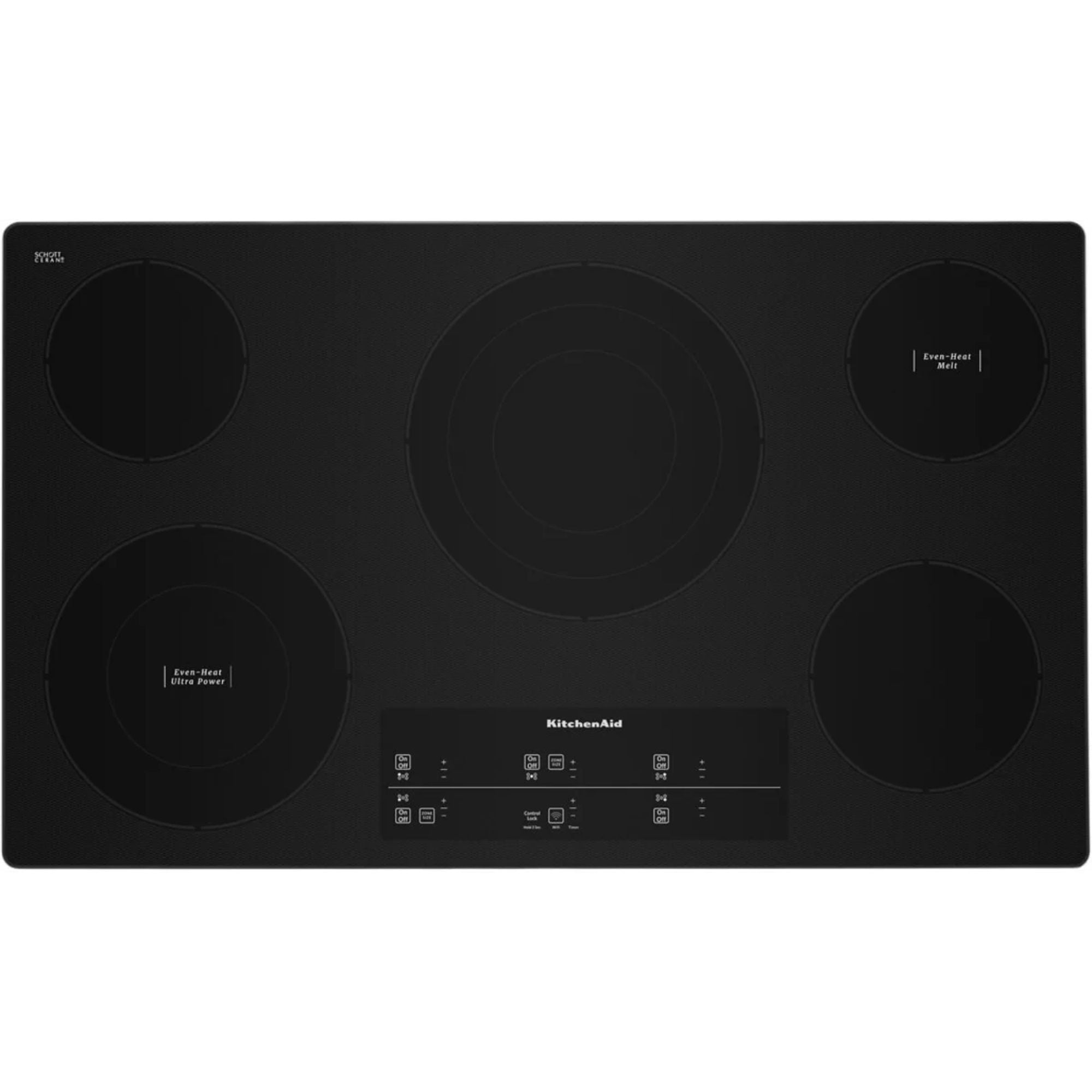 The KitchenAid KCES956KSS 36″ Electric Cooktop offers powerful, flexible cooking with five electric elements on a sleek glass surface. Touch-activated controls and Even-Heat™ technology provide precise temperature control for everyday meals.
