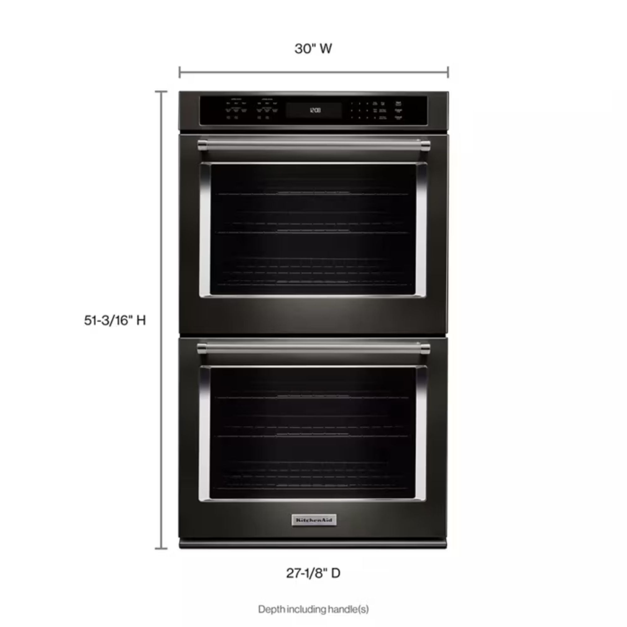 The KitchenAid 30″ Double Wall Oven delivers consistent results with Even-Heat™ True Convection in both ovens. Its spacious capacity and sleek design make it ideal for everyday cooking and large meals.