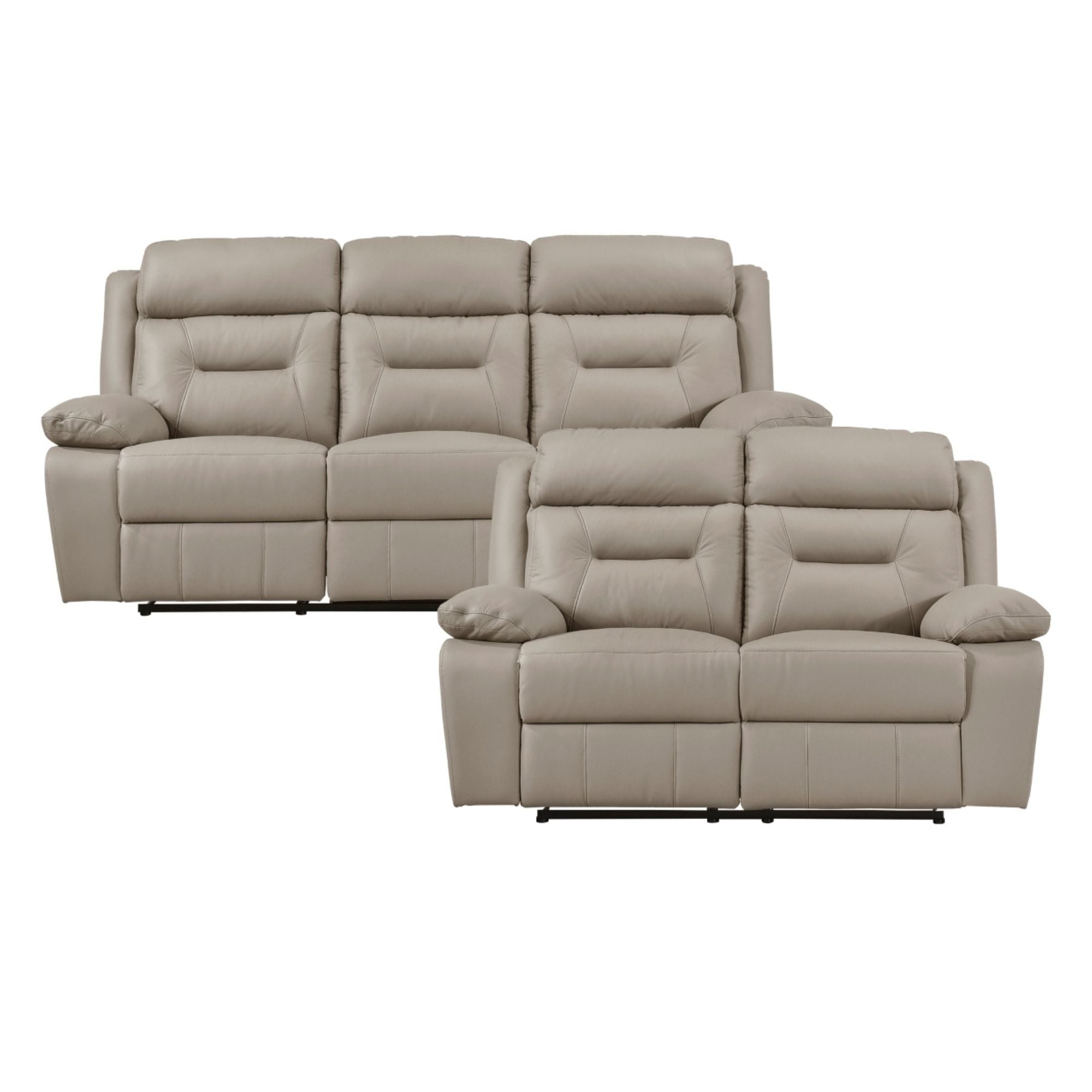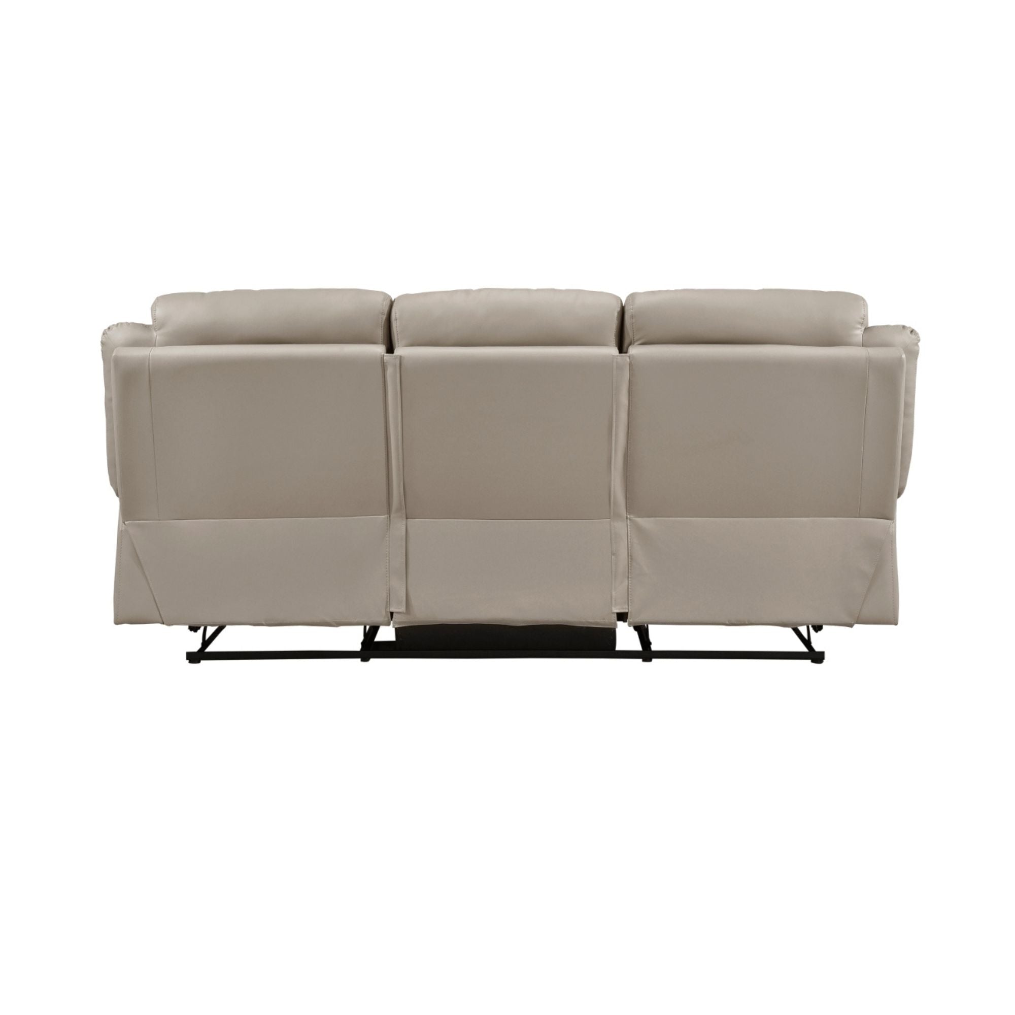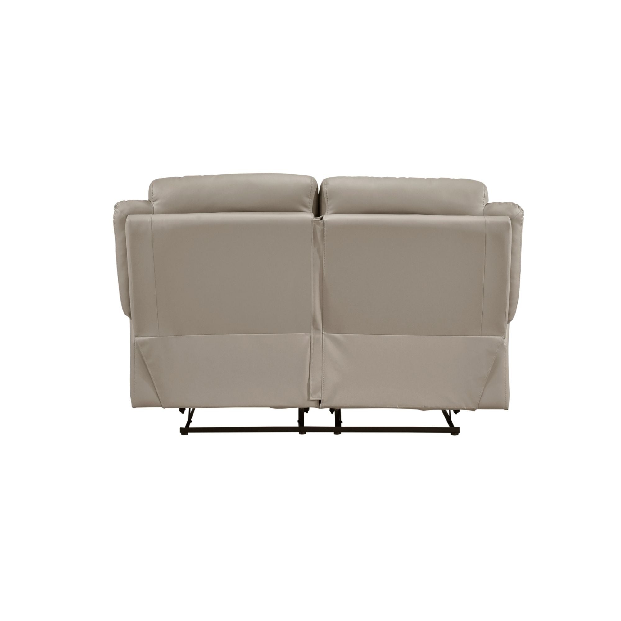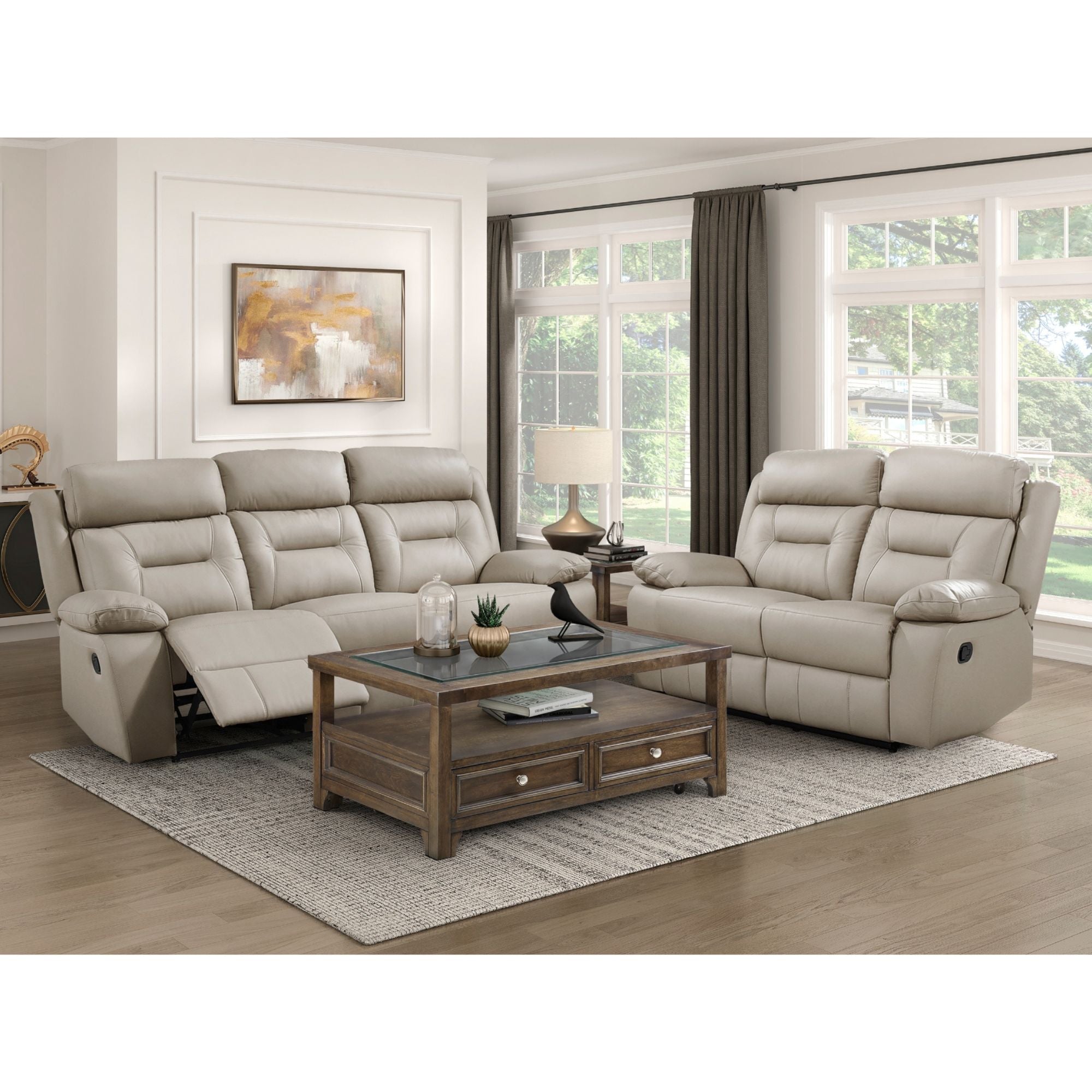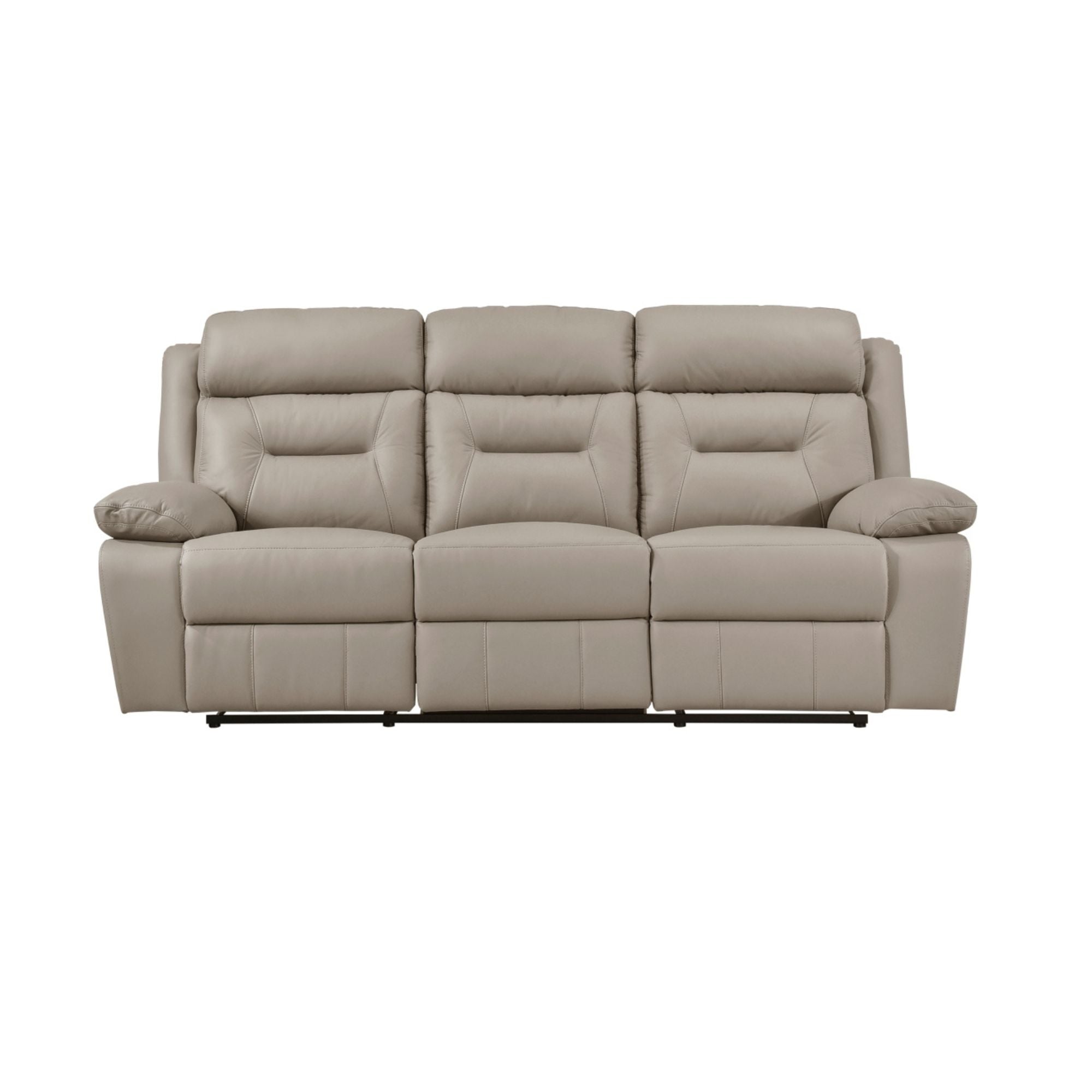Designed for comfort and versatility, the Laconia Collection brings relaxed sophistication to your living space. Upholstered in 100% top grain leather where the body touches and faux leather on the sides and back, its latte hue complements any décor. Smooth tab-pull reclining makes it easy to unwind, while a solid wood and metal-reinforced frame ensures lasting durability.
