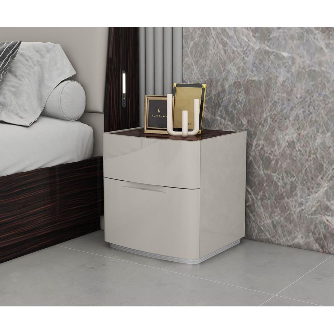 Elevate your bedroom with this modern high-gloss bedroom set — combining sleek design, smart storage, and luxury tech features.