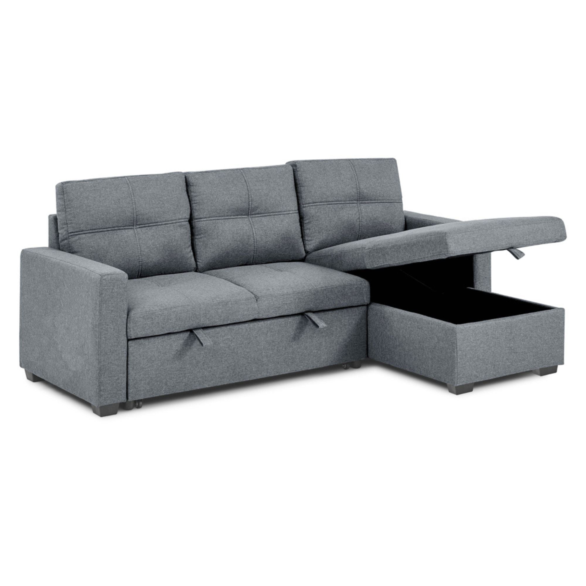 Elevate your living space with the ultimate blend of comfort, versatility, and modern style. This multipurpose sofa sectional effortlessly transforms into a full-size bed, offering the perfect solution for overnight guests without compromising on design. Its integrated storage ottoman and reversible configuration make it an ideal fit for both compact condos and spacious homes alike. Available in elegant chenille grey or sleek black upholstery, this piece redefines relaxation and convenience.