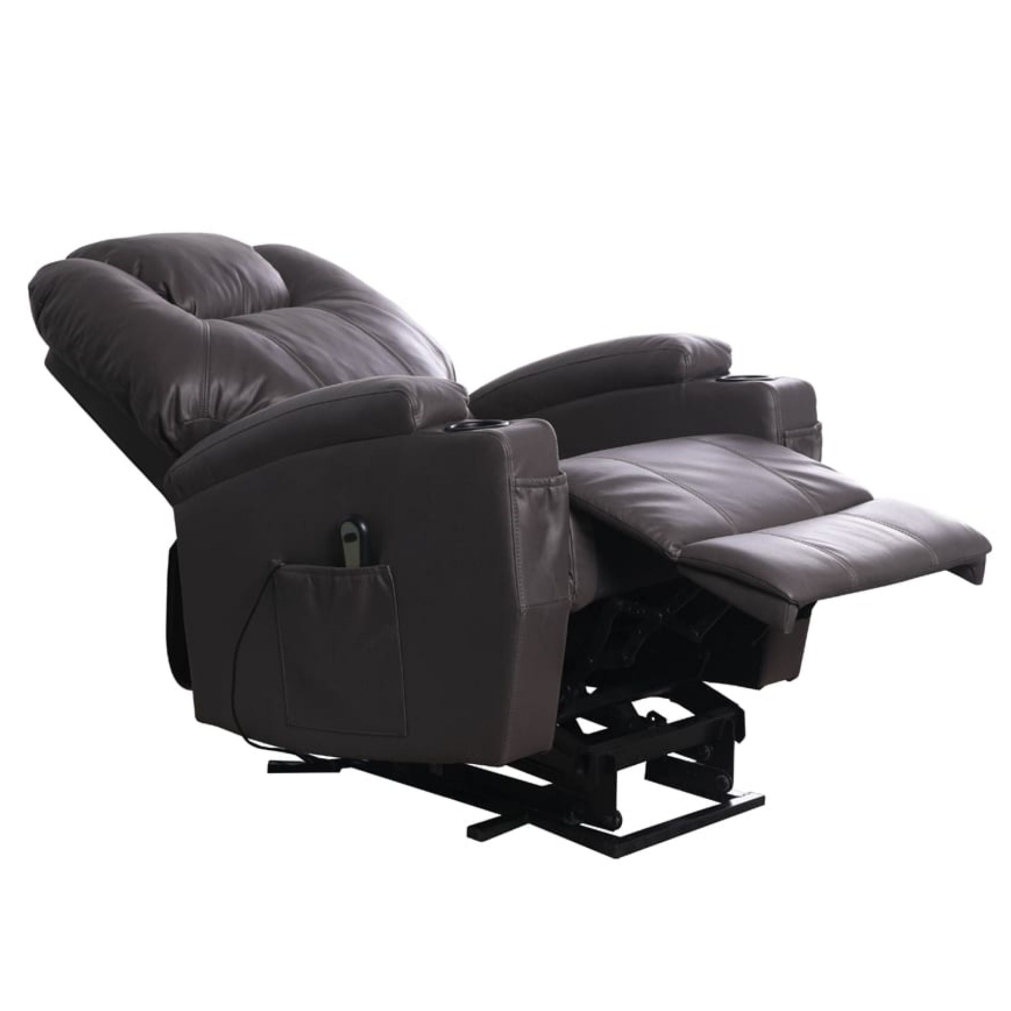 Relax in comfort and style with the T1014 Power Recliner Lift Chair. Recline or use the lift function for easy standing, while plush cushions and soft air leather provide full-body support. Side pockets and cup holders keep essentials close, and the wired remote ensures effortless control.